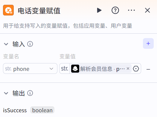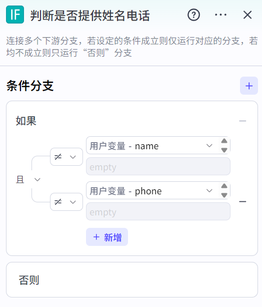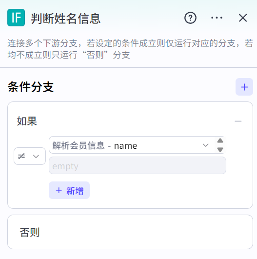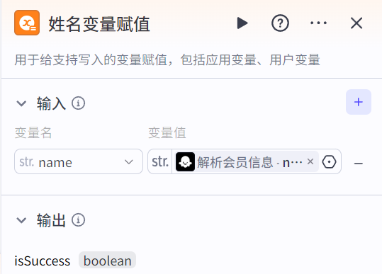 ![]() 如果大模型处理后判断用户有发“name”变量,且不为空,则交由下一步赋值变量
