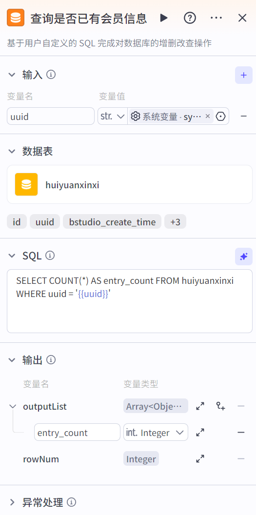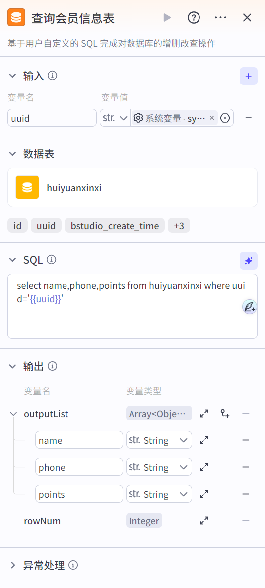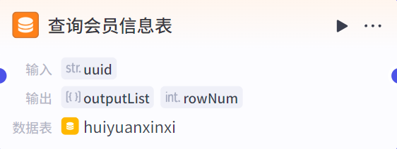 ![]() 意图识别第三个节点:查询会员信息的节点我们链接到这个查询数据