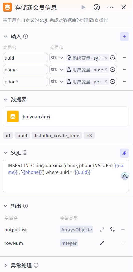这里代码的意思是在数据库中同uuid的一行中,新增填入用户的姓名和电话