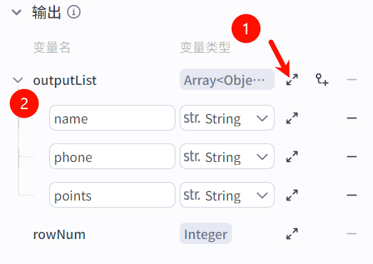 在输出项目中,我们要添加一个子输出项,即代码里写到的entry_count项,变量类型选择int