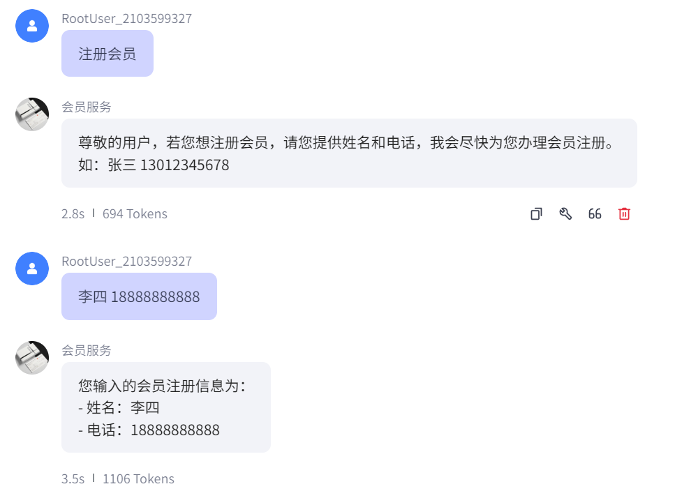 OK,这样一个可以提供会员服务的基于对话流的智能体就做好了