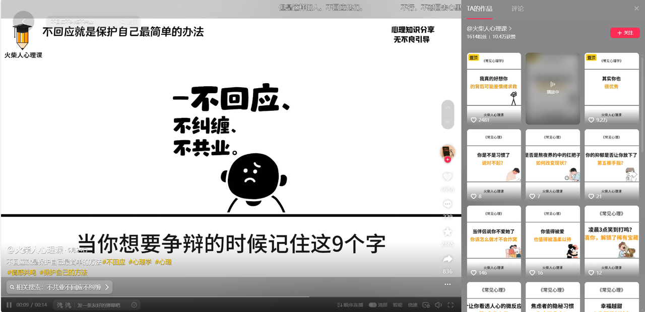 随着这类视频的走红,不少内容创作者都开始打造自己的火柴人心理学IP