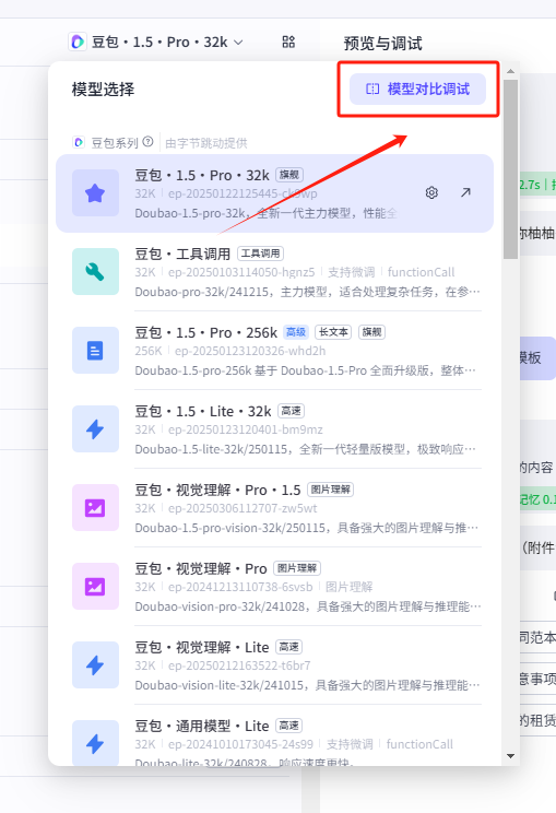 并且在实际调试过程中,Coze也是支持我们同时对两个不同的模型进行测试的