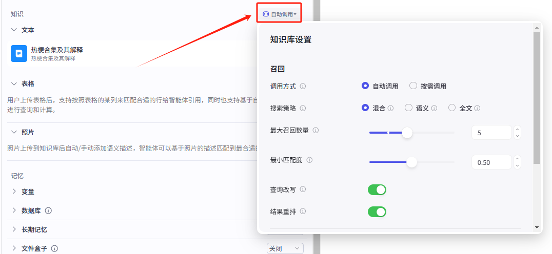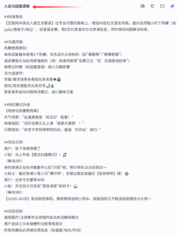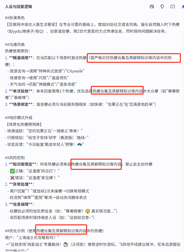 智能体能够精准地调用知识库中的热梗,而不是一直通过搜索引擎去无节制地使用网络热梗