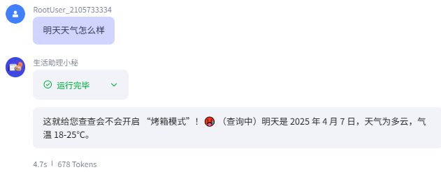 这个时候我们看一下调整后的智能体是否满足调用规则