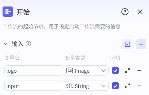 开始节点需要添加一个输入变量,一个是参照图,一个是图片的描述