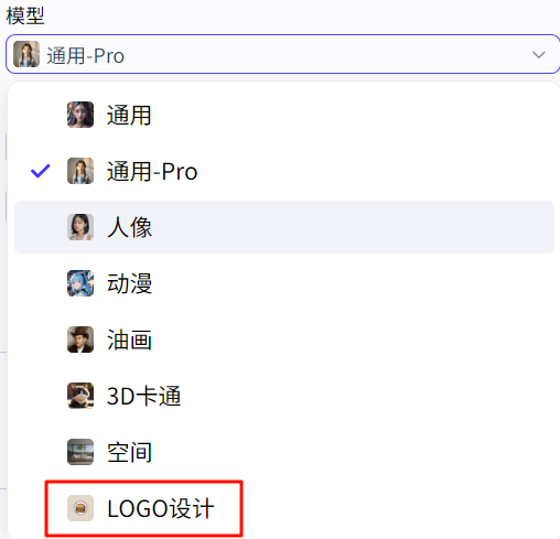 模型有专门的logo设计,但是通用-pro比较强,我们先用这个试一下,效果不满意可以切换模型