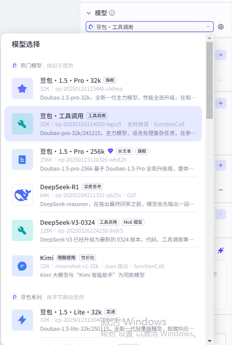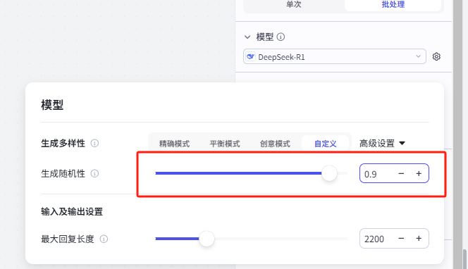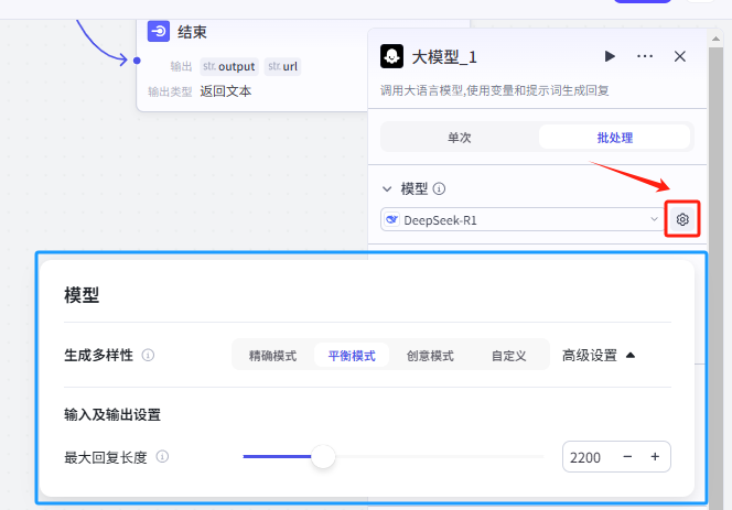 所以在工作流节点中,我们的大模型是可以进行完整的单独设置的,就比如模型选择和模型生成浮动数值调整