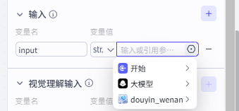 我们这里把输入和输出放到一起来讲,当工作流节点被连接起来之后,我们就可以从之前的工作流连线中选择一个输出作为我们的输入,注意,只可以选择输出不可以选择输入哈