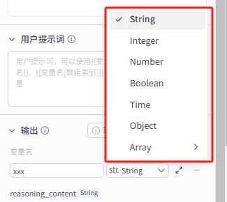 这里还涉及到一个变量类型的说明,在前面的智能体优化建议部分,没有提到变量类型,所以这里给大家单独说一下