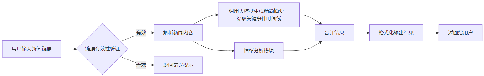 目标:输入任意新闻链接 → 输出精简摘要 + 关键事件时间线 + 情绪分析