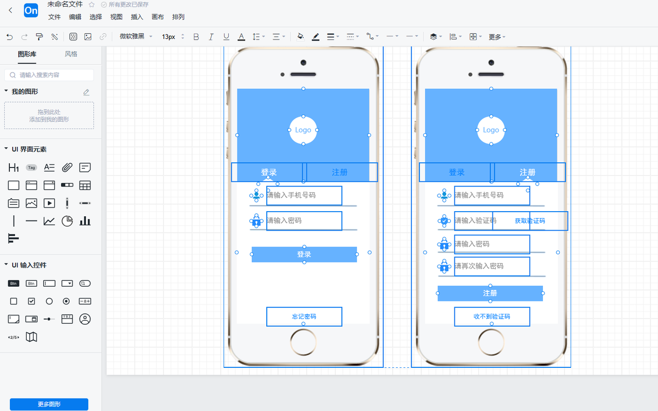 接下来我们构思一下界面的设计,我们设计两个简单的界面,并且在ProcessON上完成界面元素的堆砌设计