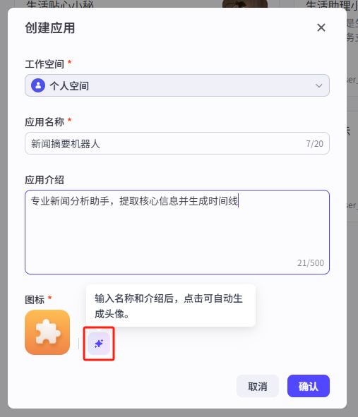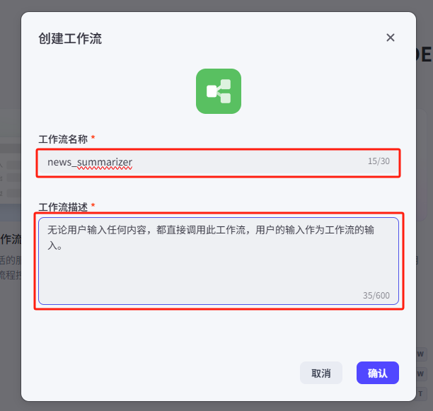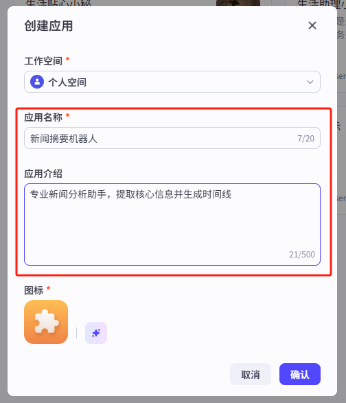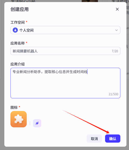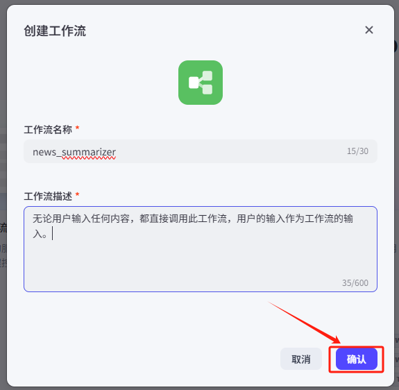 这部分的设置逻辑和创建智能体是一样的,我们都弄好之后点击一下确认