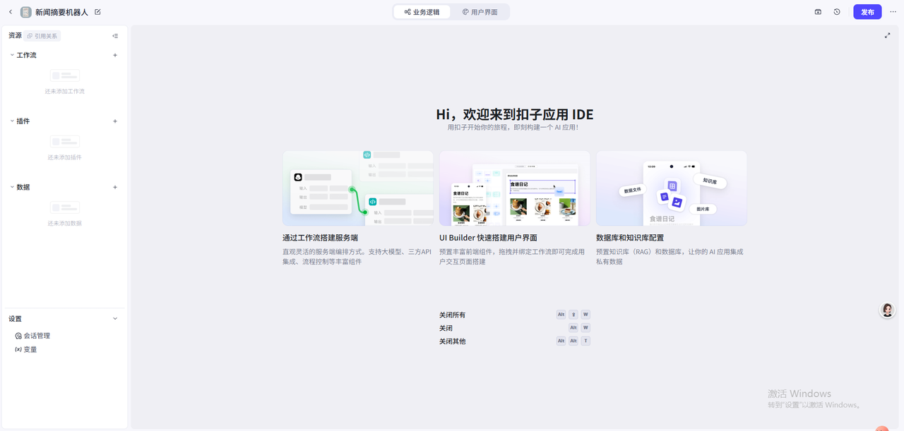完成AI应用项目创建后,就可以开始进行业务逻辑编排了