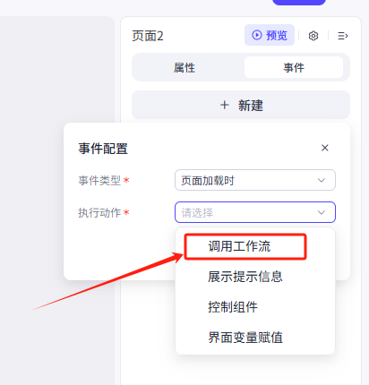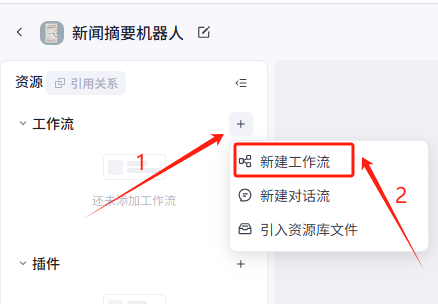 在业务逻辑页面,点击 + > 新建工作流
