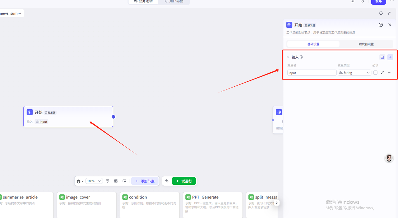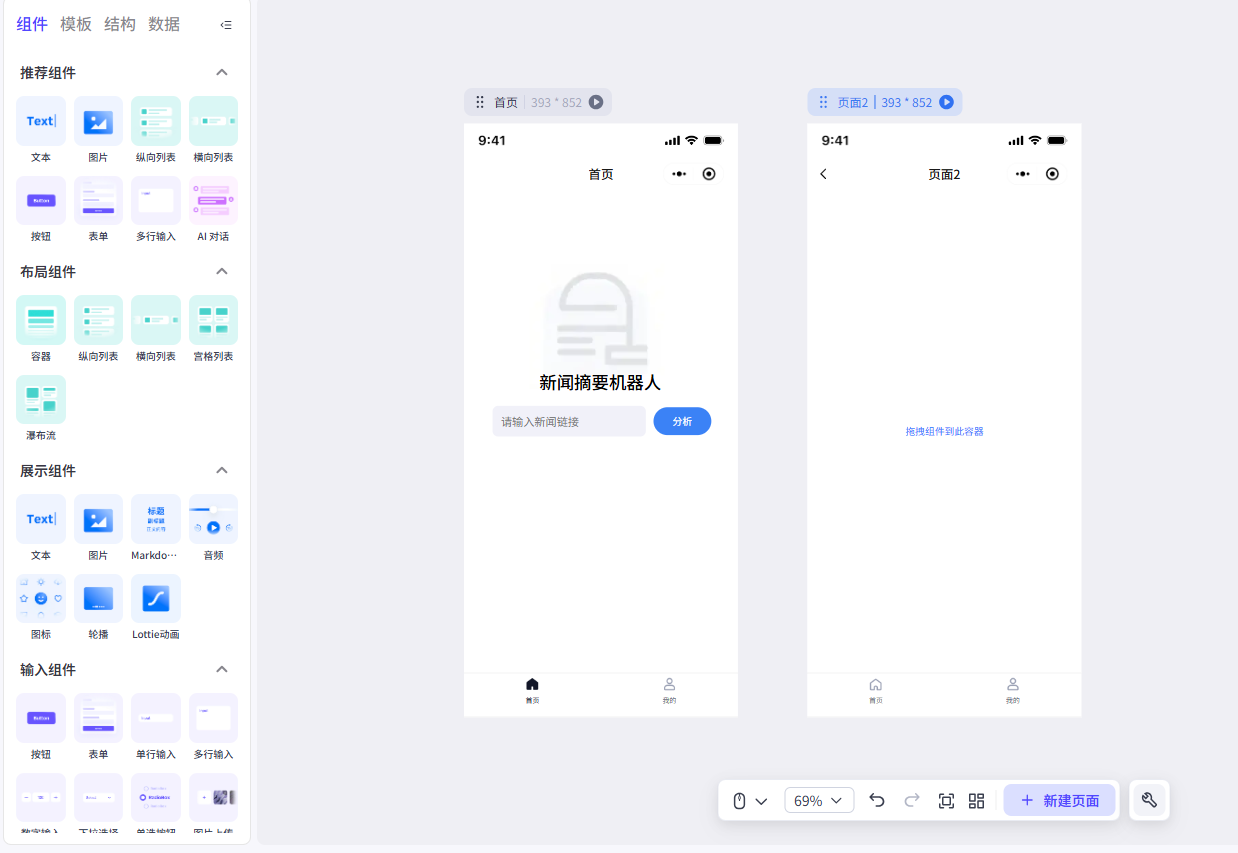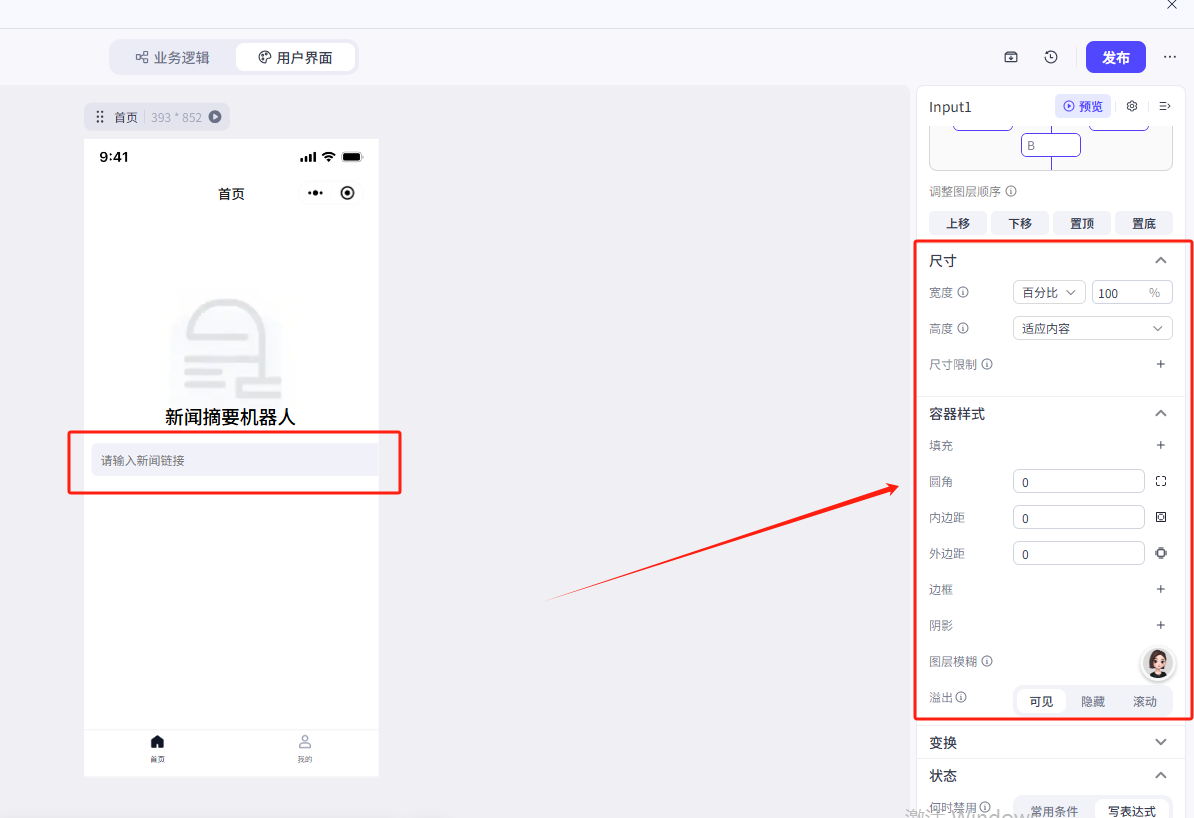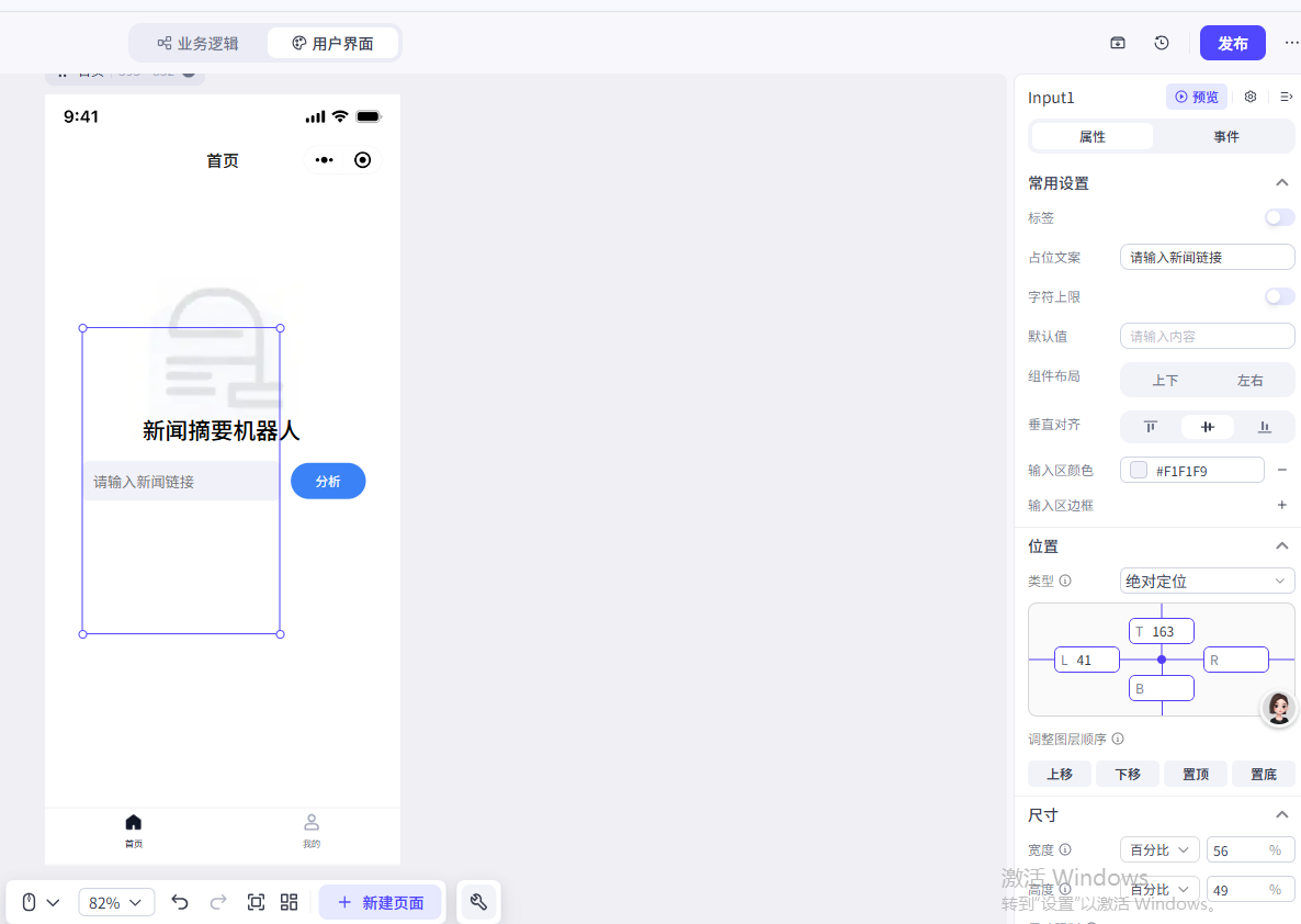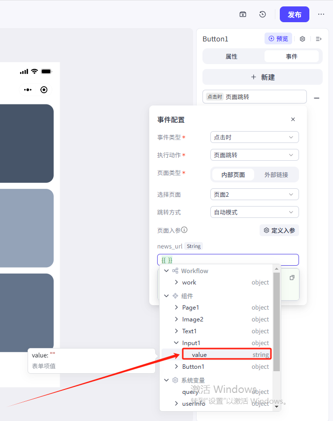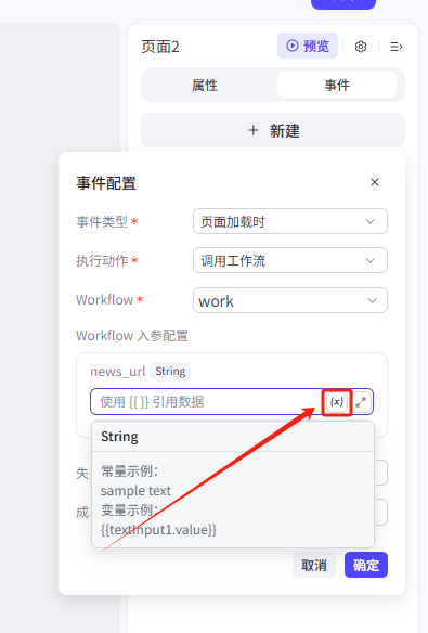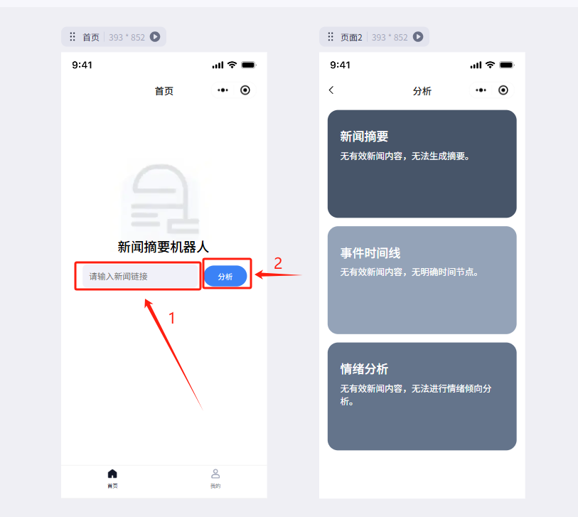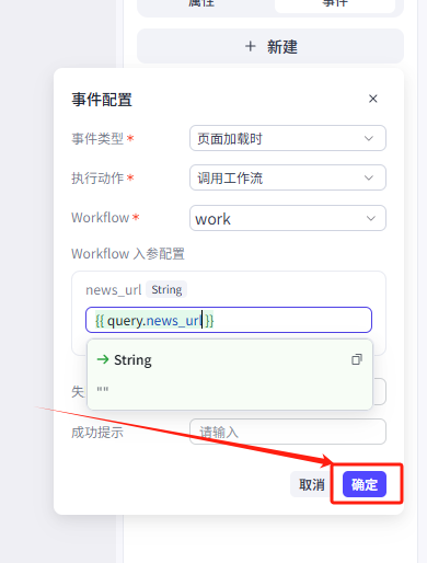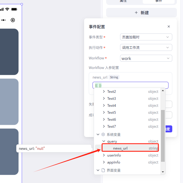 1.输入框接收输入的新闻链接,传递到分析页作为工作流的输入(变量在不同页面的值的传递)