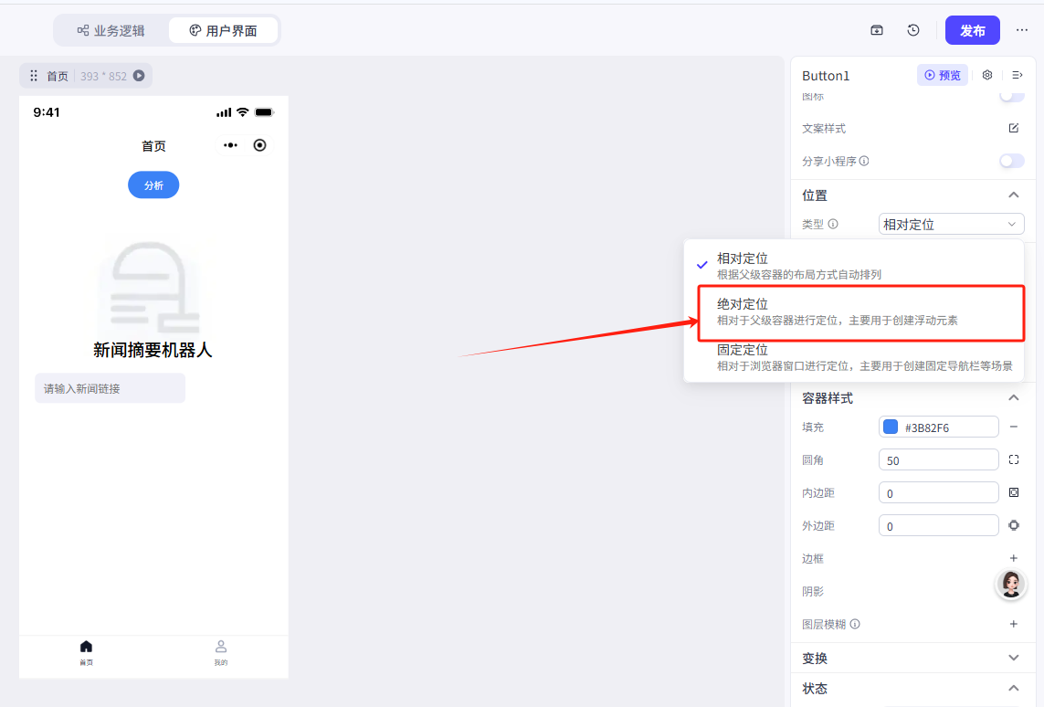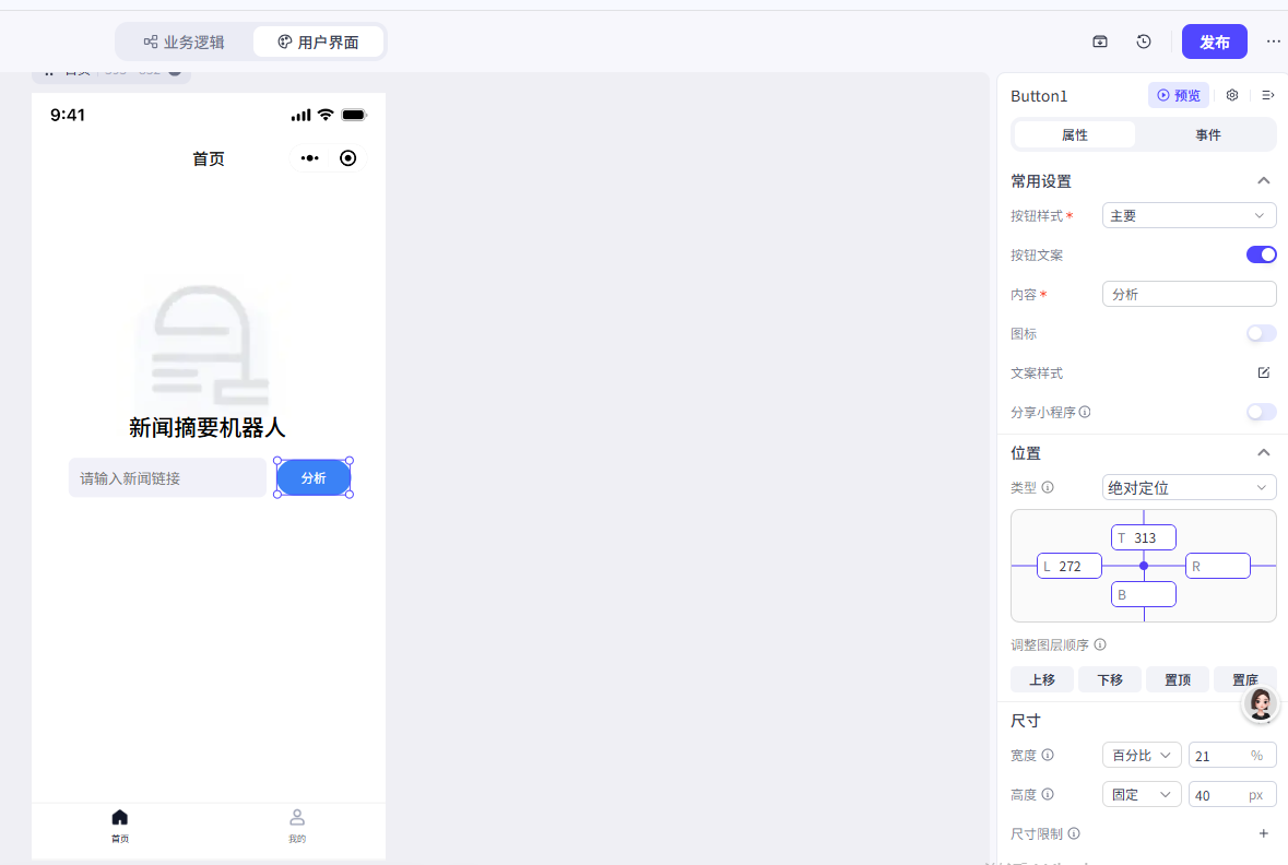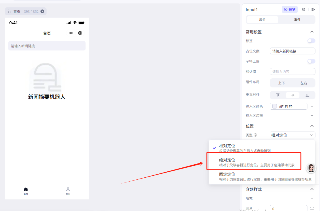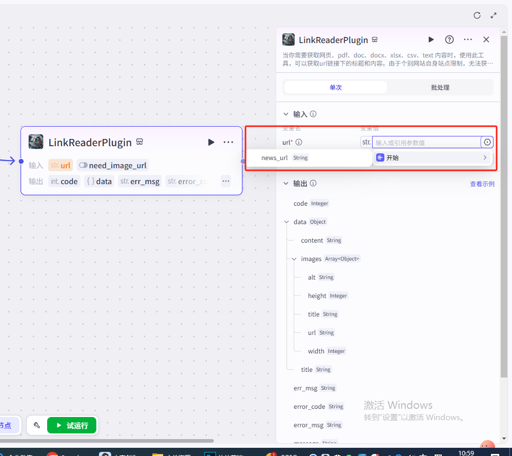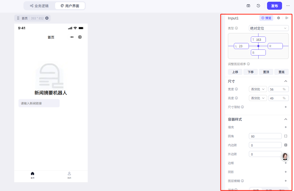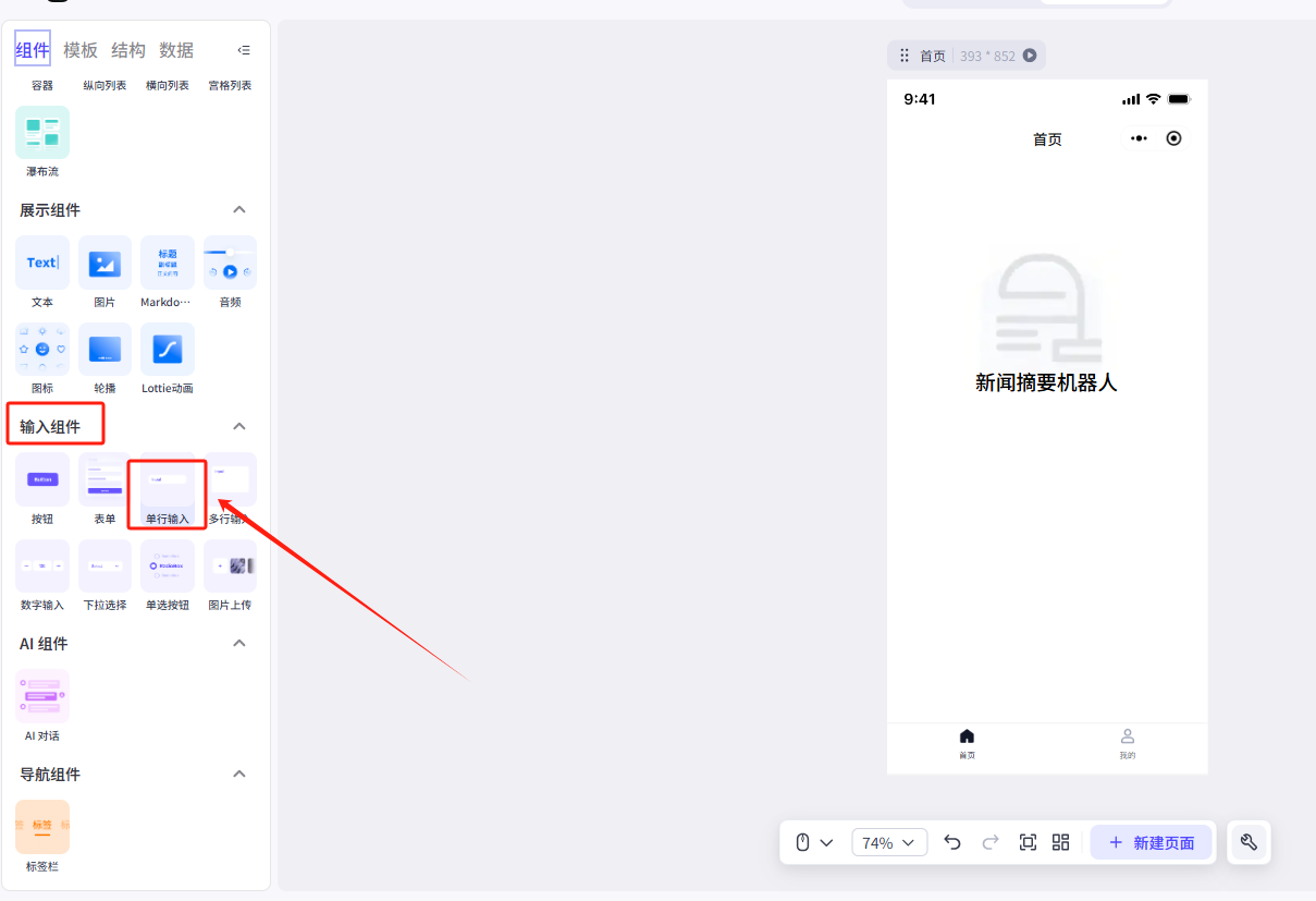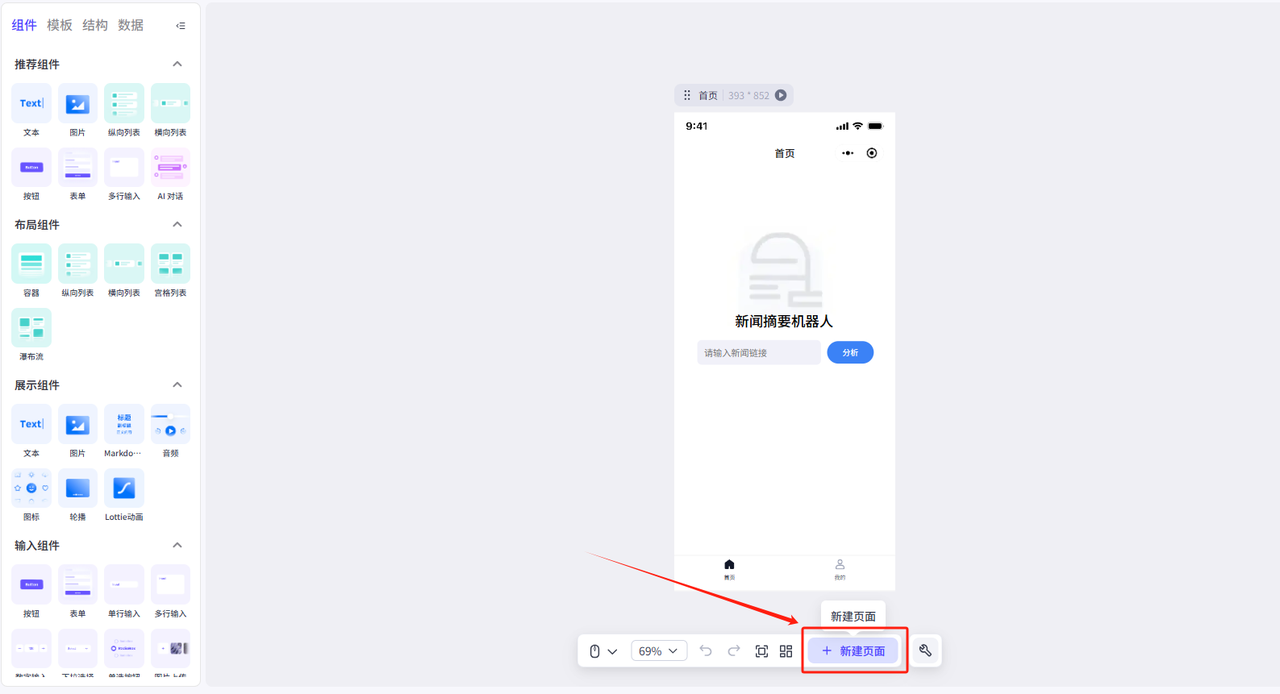 1.输入框接收输入的新闻链接,传递到分析页作为工作流的输入(变量在不同页面的值的传递)