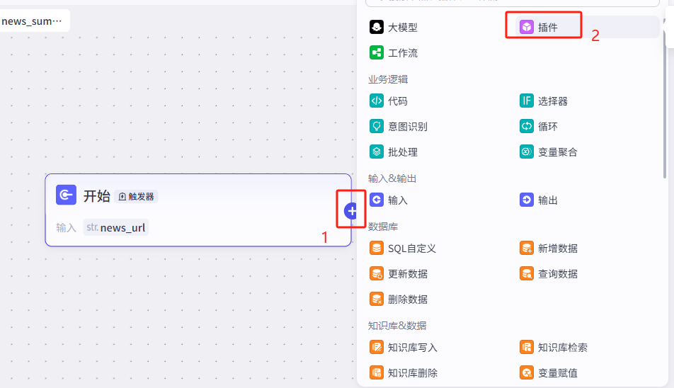 单击开始节点的连接线 → 选择 网页提取插件
