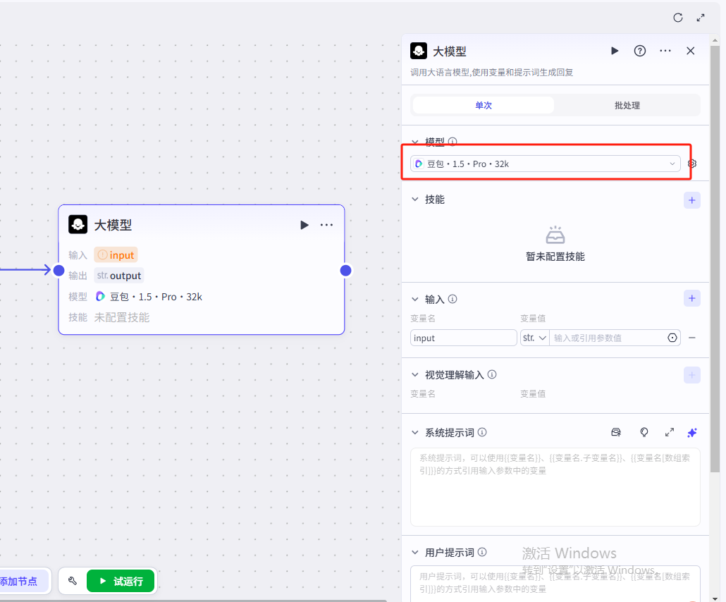 d.添加大模型节点