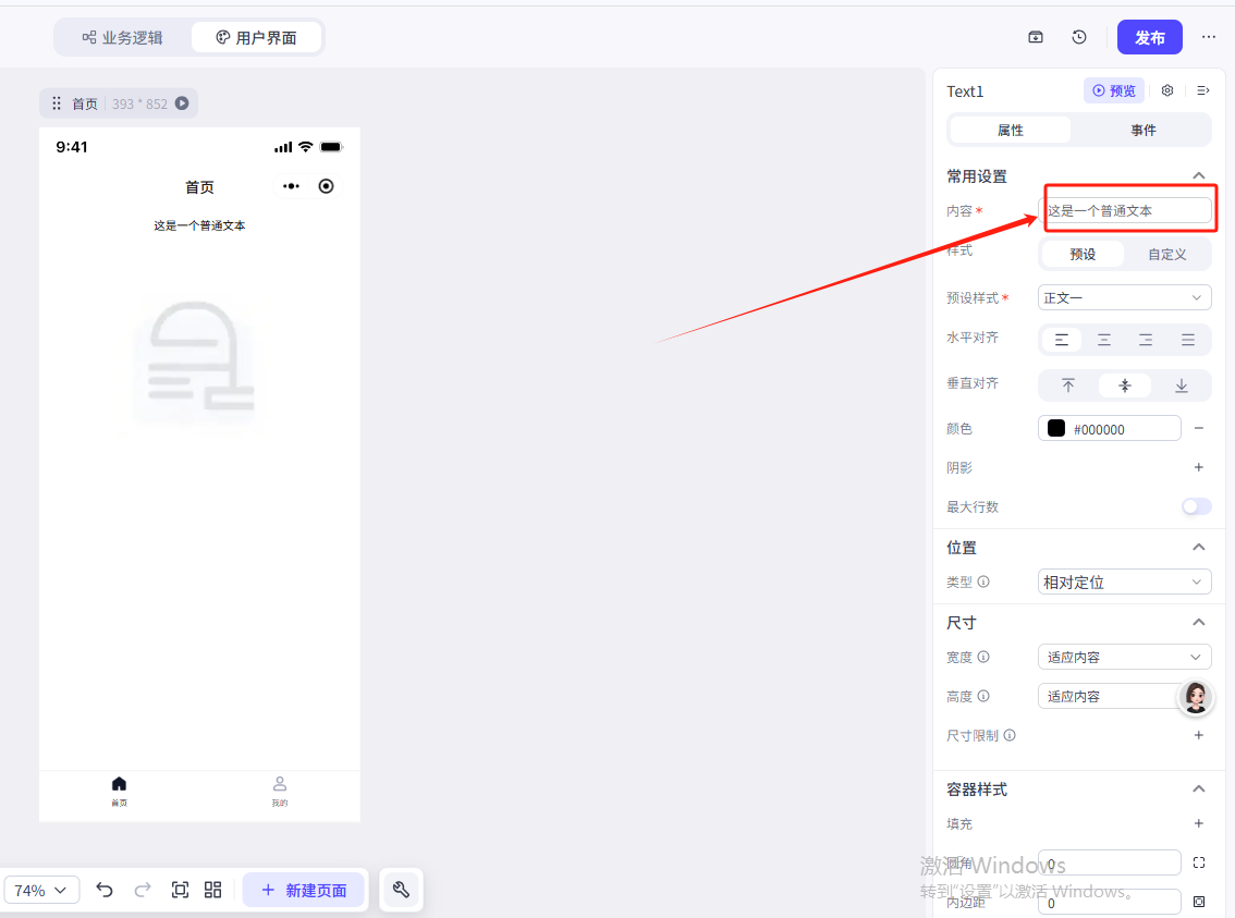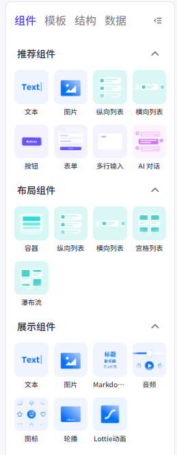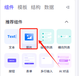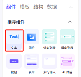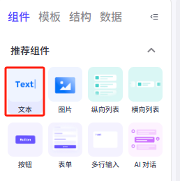 在左侧的组件菜单找到推荐组件——文本,把他拖动到容器内