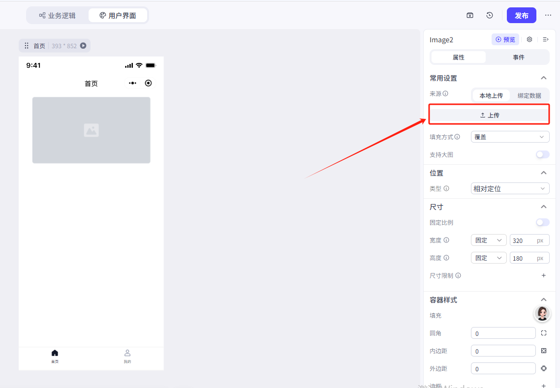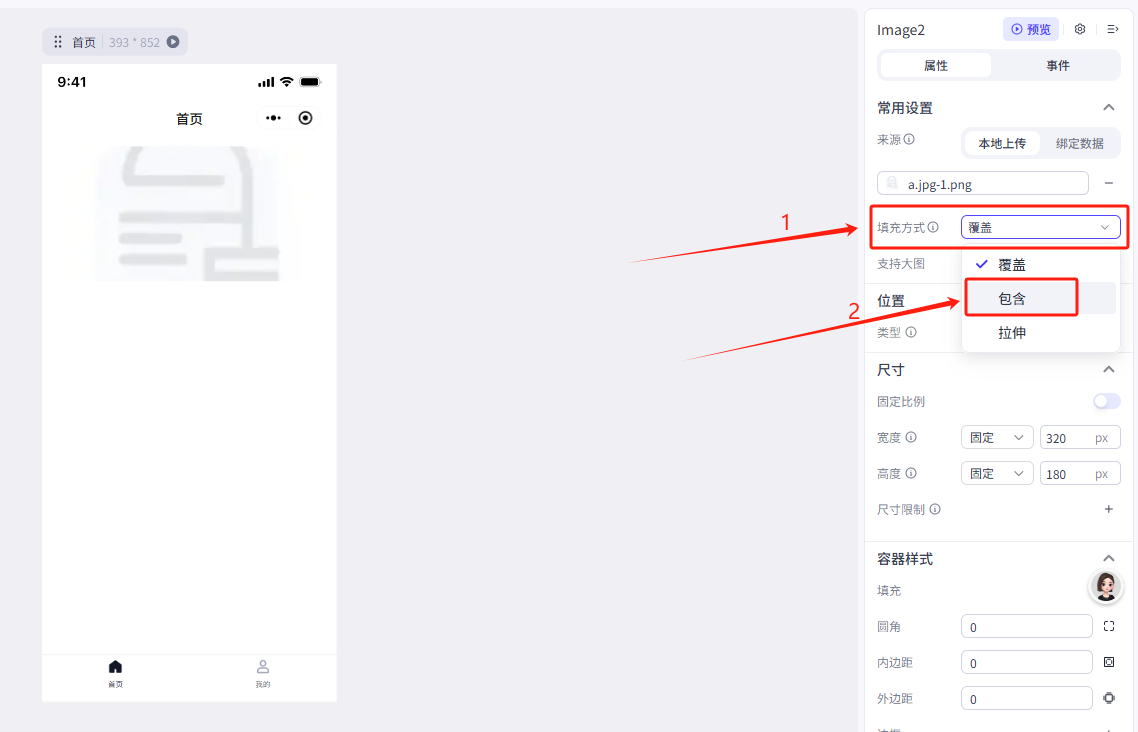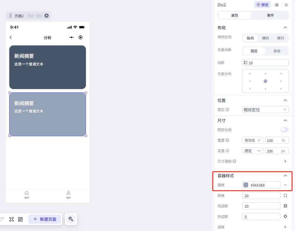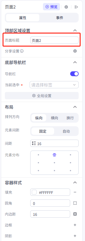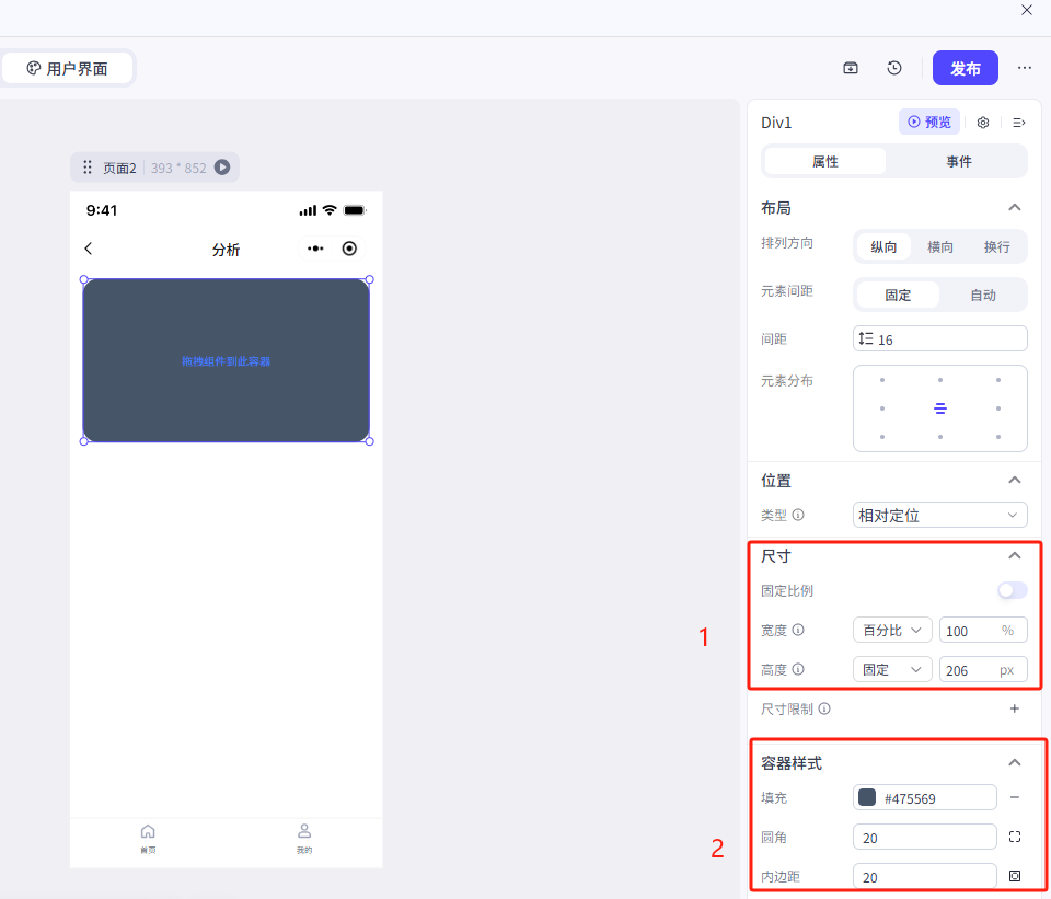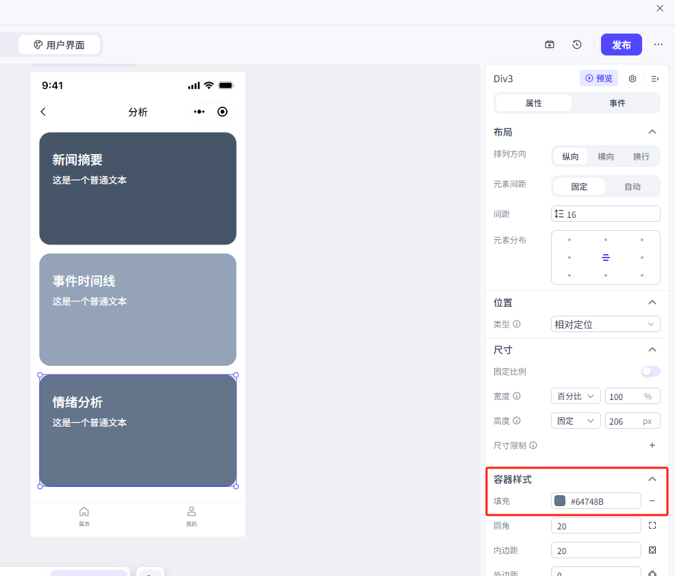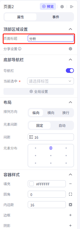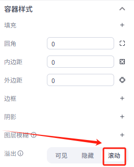 点击容器,在右侧菜单中更改一下它的属性