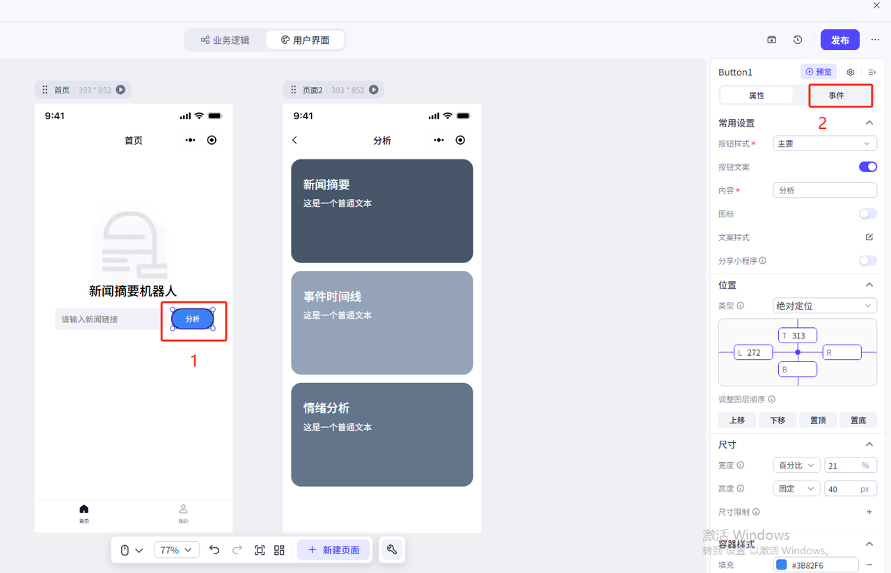 这个逻辑需要实现的是点击分析按钮跳转到第二个界面(页面跳转设置)