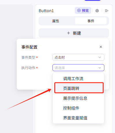 选择执行动作为页面跳转
