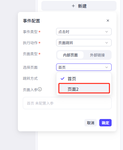 在弹出来的窗口中选择页面为页面2