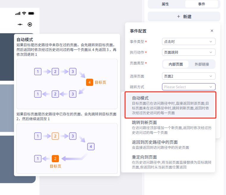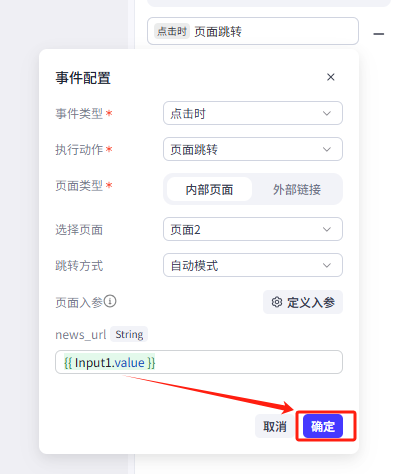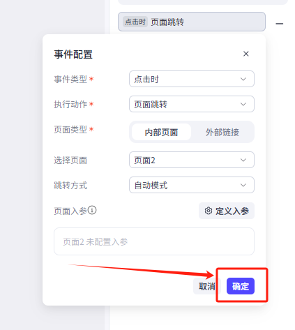 跳转方式为自动模式,不需要配置入参,设置好之后点击确定