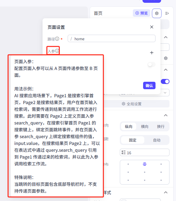 不过需要注意一下它的特殊说明,想要设置入参的话,我们的页面就不能开启底部导航栏