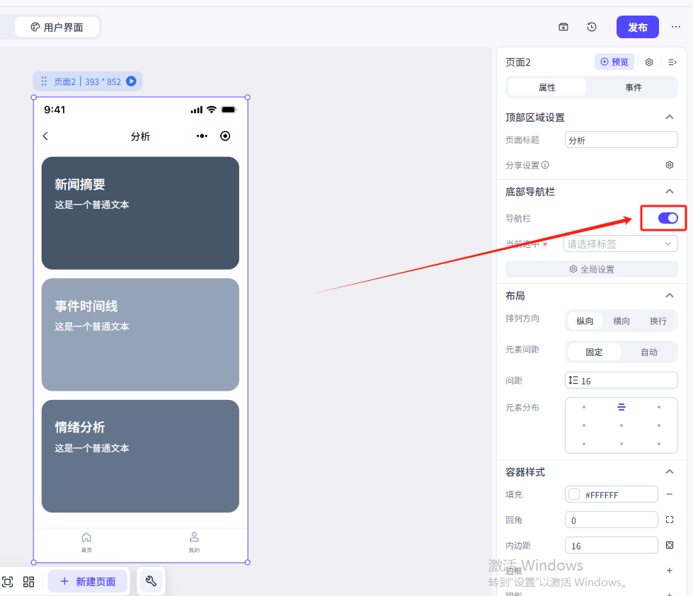 所以点击分析页,然后关闭底部导航栏