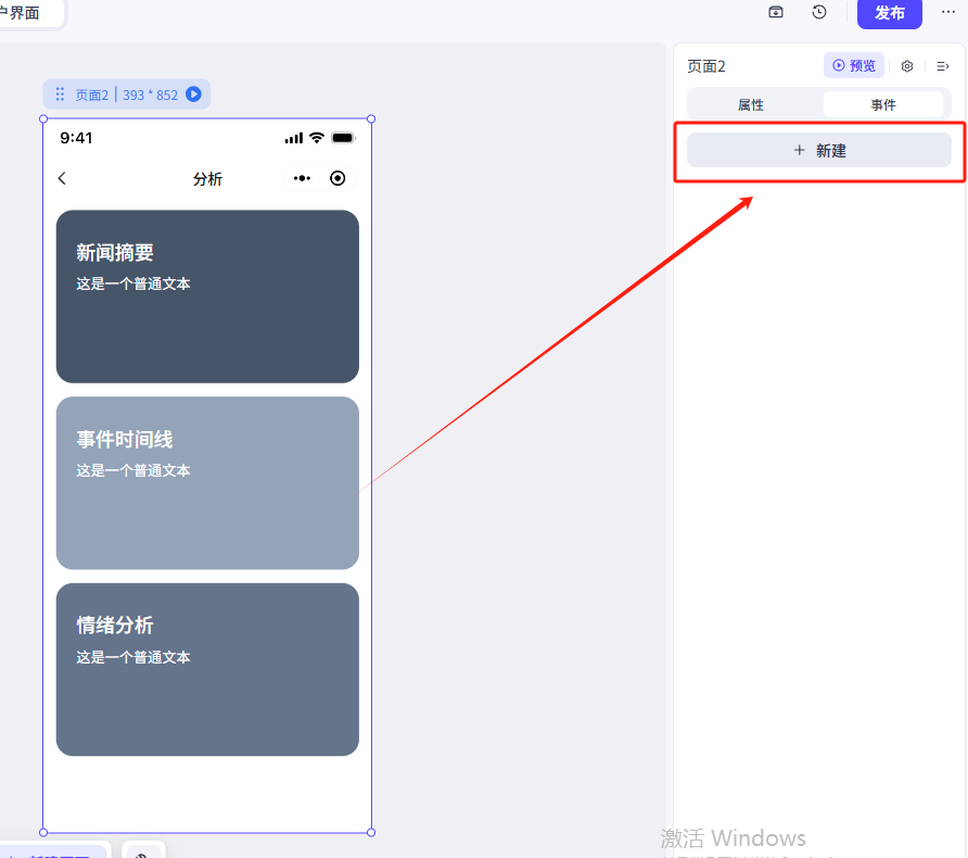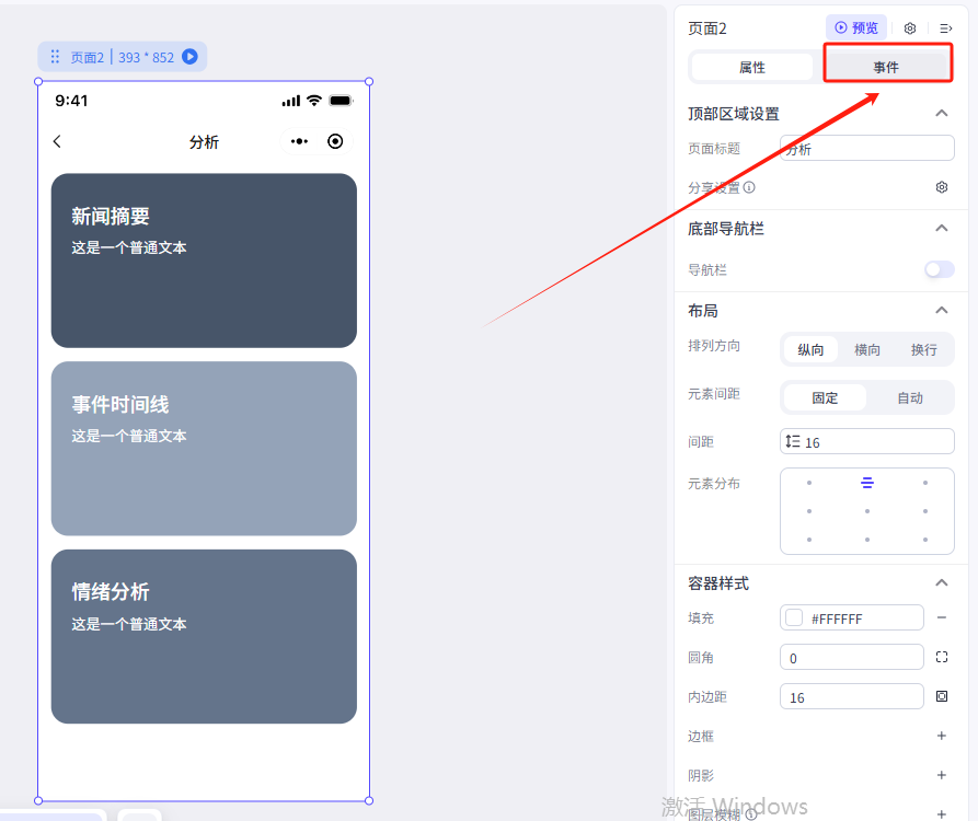 所以我们直接点击首页的按钮,然后再点击右侧菜单栏的事件