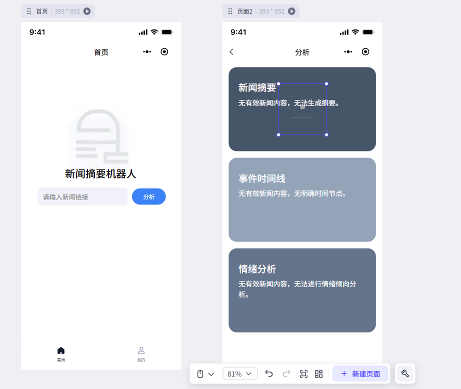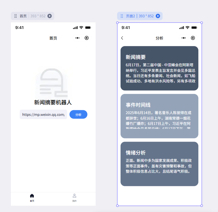我们的新闻摘要机器人以手机端的界面设计为例,给大家展开讲一下相关的硬核内容