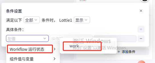 选择好之后,我们要完成一个逻辑的设置:这个动图只能在工作流加载的时候出现