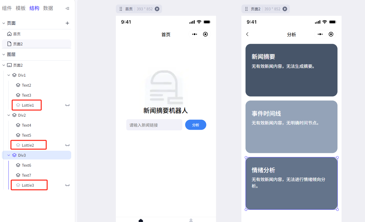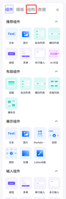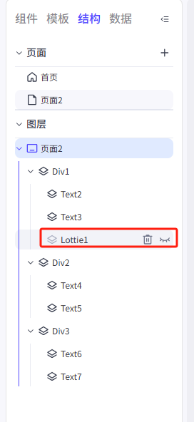 点击左侧菜单的结构 然后再点击Lottie1