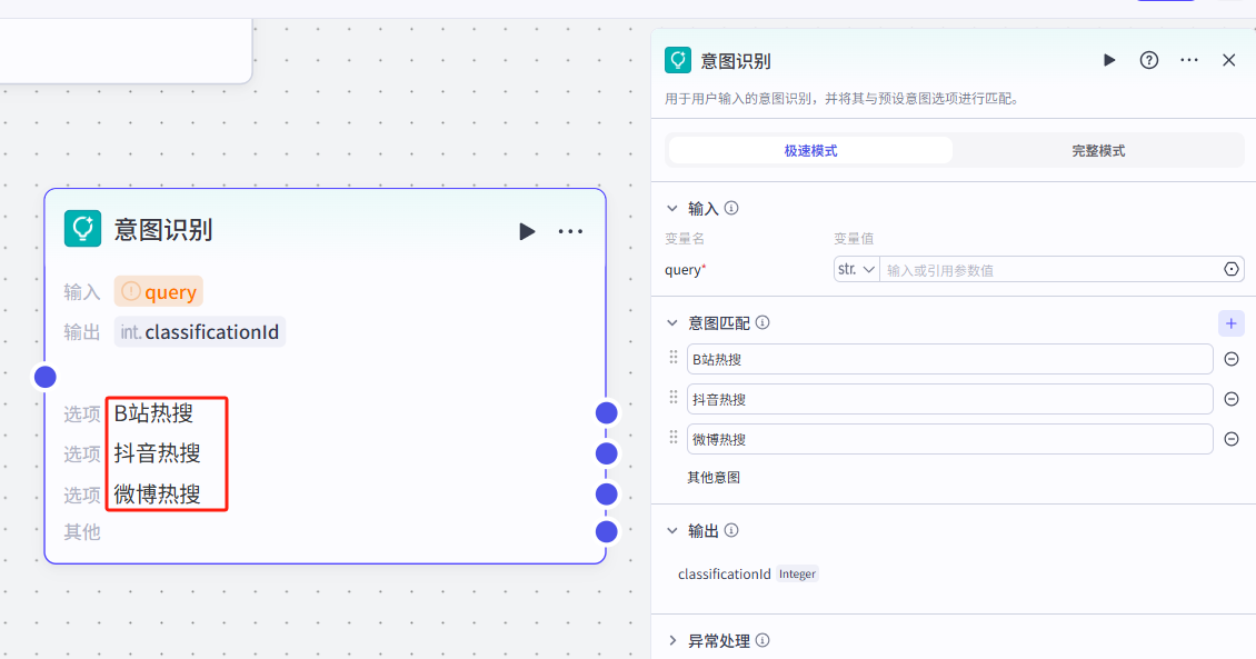 大家在后续进行优化的时候,可以添加一个意图识别节点,或者是选择器节点,判断用户想要获取的热搜平台,实现精准调用插件