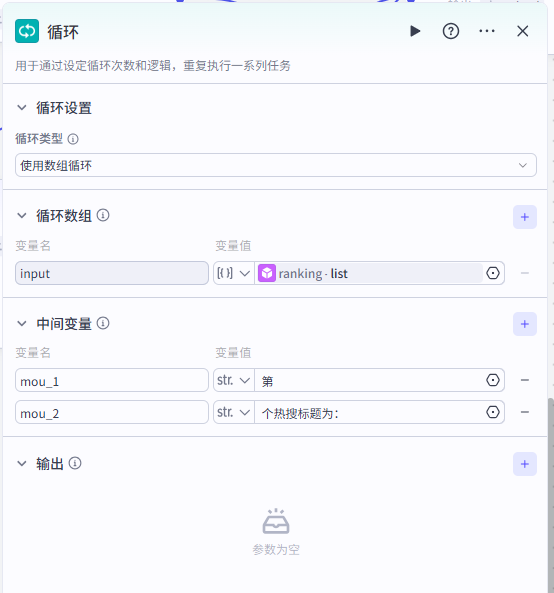 ![]() 然后还需要添加前面节点获取的用户想要用到的热搜标题信息