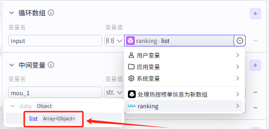 ![]() 循环数组为前面的插件节点的list数组