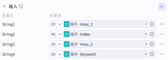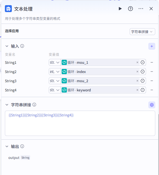 ![]() 输入部分的设置就是添加我们需要拼接的字符串