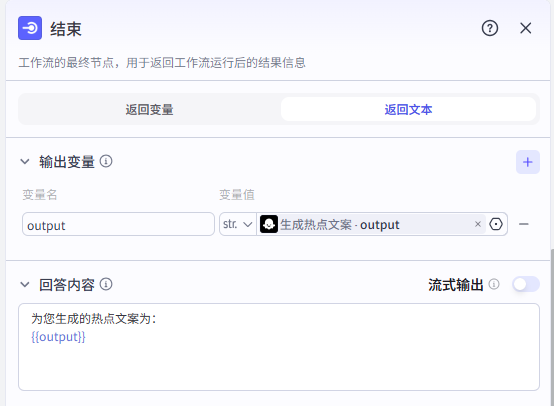 输出变量为前面的大模型节点的输出