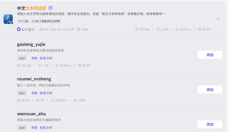 语音或链接方面:这两个部分的生成基本都是要配合大模型和插件协同工作,比如大模型处理文本,插件配合导入飞书文档,最后输出飞书文档的链接给到用户;或者大模型处理文本,插件配合生成音频,甚至现在插件有了新的运用,可以生成一些简单的视频