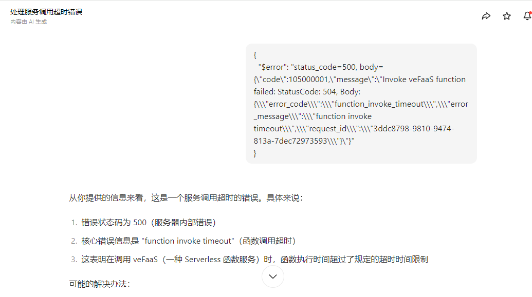 再比如这里,插件节点报错,为什么报错?自己复制节点的输出去让豆包分析一下