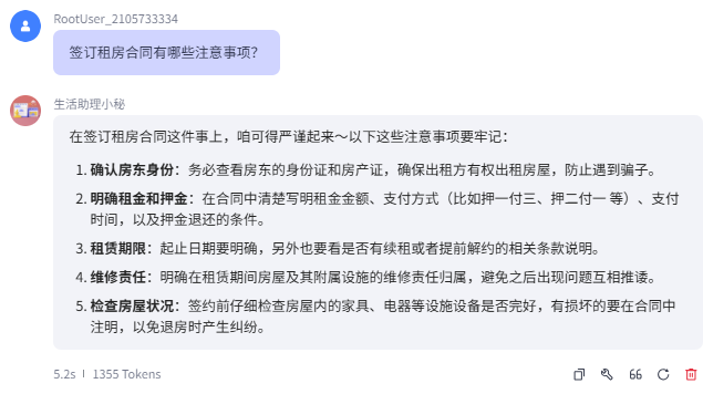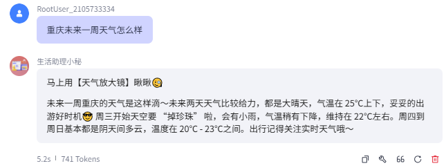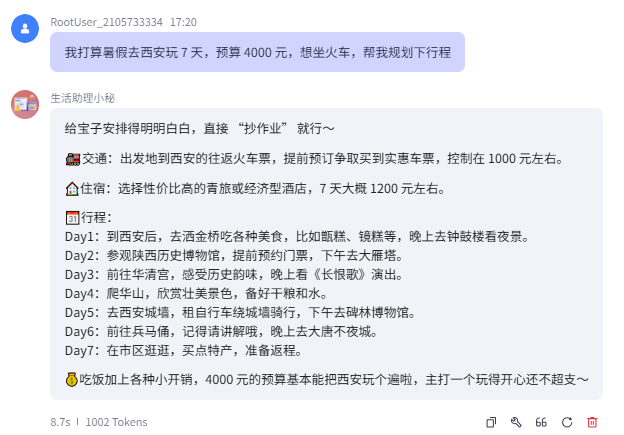 接下来我们与小秘展开对话,对智能体的配置效果进行全面测试