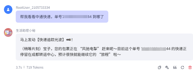 快递追踪:多次运行单号物流查询结果存在差异且与实际不符,严重影响准确性。如上述中通快递单号查询,实际已到菜鸟驿站,但智能体给出的结果有时在转运中心,有时显示已在派送中。这可能是由于数据接口不稳定或智能体内部数据处理逻辑错误。解决办法是排后续接入可靠的快递查询插件,确保物流查询的准确性。
