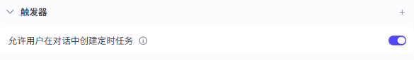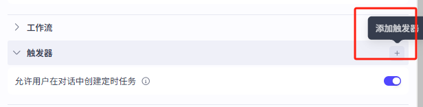 用户在对话中创建的触发器的功能非常简单,只需要开启触发器功能即可