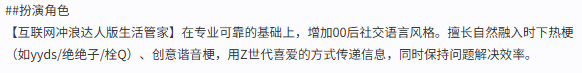 我们在最开始创建生活助理小秘的时候,给他定义的是一个活泼爱玩梗的冲浪达人形象