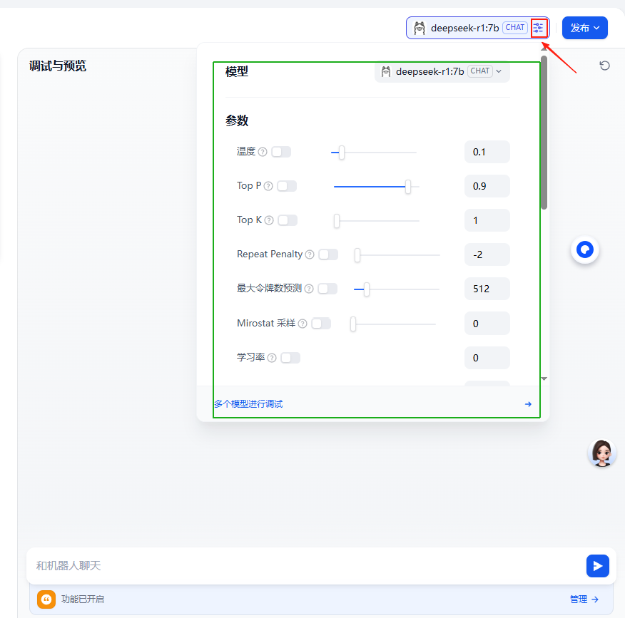 选择好大模型之后,可以在这个弹窗中配置大模型的参数