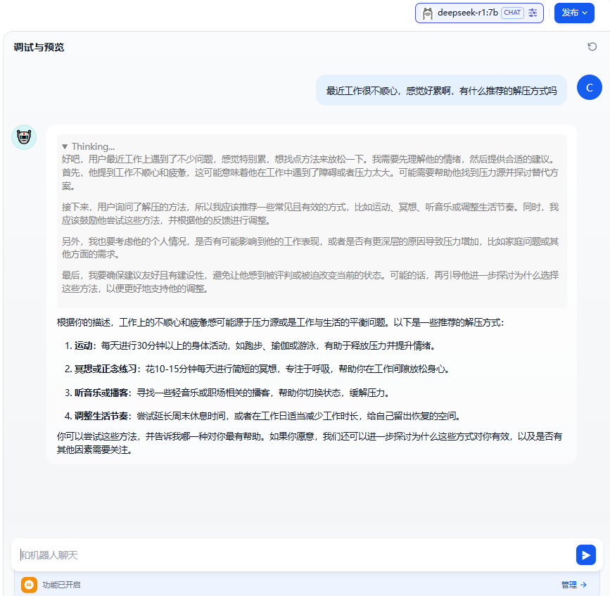 相关说明:由于我们选用的大模型是deepseek,所以这个部分是默认开启的,主要就是输出一些附属内容