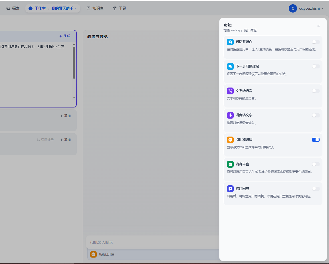接下来我们通过给聊天助手配置更多功能,帮助大家了解一下这部分该如何应用