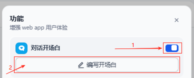 首先需要点击开启按钮,然后再次点击编写开场白按钮